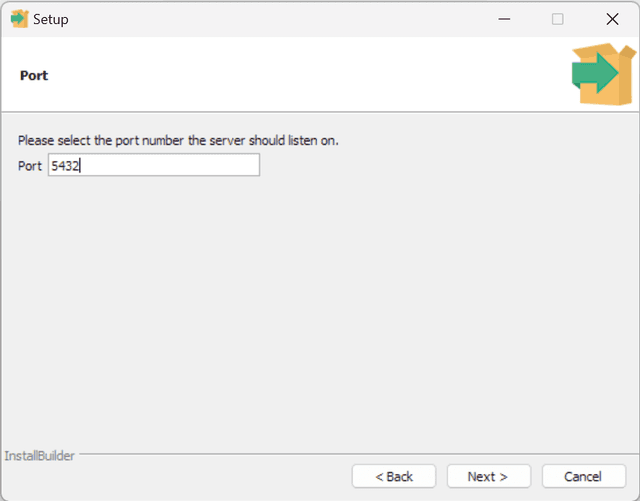 Step 7. Specify a port number on which the PostgreSQL database server will listen. The default port of PostgreSQL is 5432. Ensure that no other applications are using this port.